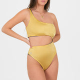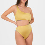 Maillot une-pièce asymétrique et réversible. Excellent maintien de la poitrine.