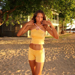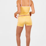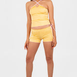 Faites-vous remarquer cet été avec notre Shorty, disponible en deux coloris audacieux et éblouissants. Ce shorty taille basse a des liens coulissants à nouer sur les côtés et arbore une coupe moulante. Craquez pour son logo "P" en strass.